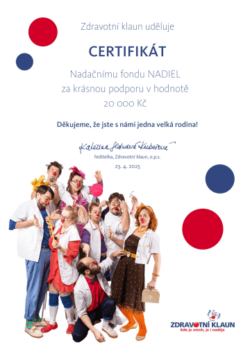 Nadační fond Nadiel poskytl organizaci Zdravotní klaun příspěvek ve výši 20.000, -Kč.